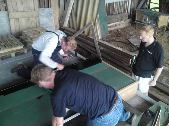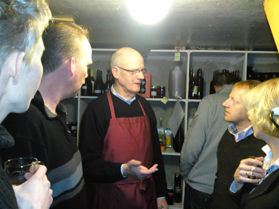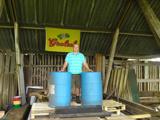 Bij de bouwplaats van de Broertjes is een heuse wijnmakerij. "Vader" Henk stookt daar de lekkerste wijnen en likeuren en natuurlijk moesten de wagenbouwers hier ook een keer van proeven. Onder het genot van enkele hapjes werd de ene na de andere fles opgedronken en kreeg men uitleg over het wijn maken. Helaas werd de wijn net zo snel gedronken als bier en daar hadden enkele Broertjes de volgende dag veel "gemak" van.![]() |