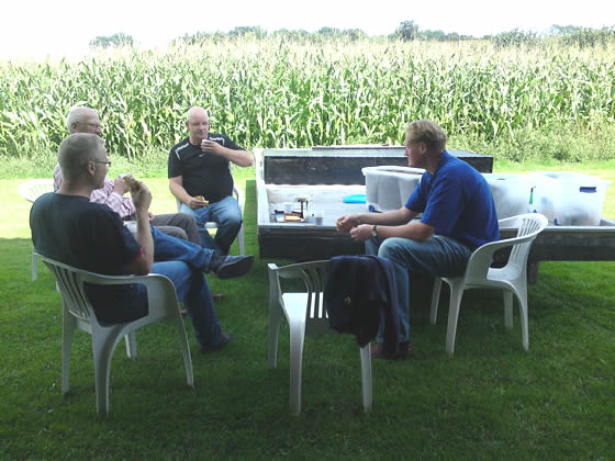 Plotseling ging het hard met de bouw van de wagen, tijd om eens flink op de rem te trappen want anders was de optochtwagen al klaar geweest. Maar dan wel een week te vroeg. De overijverige wagenbouwers staken ouderwets de handen uit de mouwen, iets wat de laatste jaren niet vaak was voorgekomen. Het podium is gereed gemaakt en de diverse attributen waren al geregeld. De finishing touch kwam aan het eind van de middag toen het decor werd geplaats. Nog een paar afwerkpunten en de wagen is klaar. Zo houden De Broertjes tijd over om op de vrijdag voor het Septemberfeest de wagen goed nat te maken en te barbecueën.![]() |