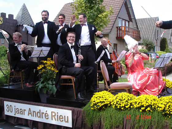 Nog nooit was de optochtwagen zo vroeg klaar, op vrijdagmiddag om drie uur was iedereen al aan het bier. Morgen zitten de wagenbouwers als een orkest op de wagen onder leiding van André Rieu, die dit jaar 30 jaar in het vak zit. In het plaatselijke blad Contact was een aankondiging te lezen. Broertje Richard was de bedenker van dit onderwerp, die zijn ingeving kreeg op de lokale braderie. Iedereen stemde daarmee in, ook gezien het eerste waardeloze idee met de chinezen, wat al weer in de koelkast is geschoven. Na de barbecue bleef het nog lang onrustig op de bouwplaats.Tekst Contact: