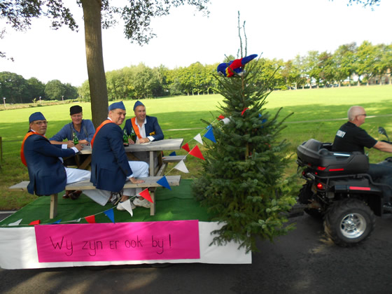 De optochtwagen was op vrijdag wel erg snel klaar. Om drie uur werd het sein "drank meester" gegeven, waardoor men vroeg aan het bier kon. Dit jaar werd gekozen voor "Kom er bij, op de wei", naar aanleiding van de nieuwe opzet van het Septemberfeest in Ruurlo dat dit jaar alle activiteiten op de feestweide organiseert. Een ander idee over de verkiezingen haalde het net niet, hoewel er wel een campagne werd gehouden. Complicaties waren er dit jaar wel voor de half-broertjes, die hun bestelde cabriolet wegens technisch mankementen niet kreeg. In de haast werd er nog een aanhanger geregeld, maar deze moet nog wel geheel worden aangekleed. Zaterdag vanaf 9 uur willen de half-broertje dit in orde maken. In de optocht van zaterdagmiddag kan men zien of dit gelukt is.![]() |