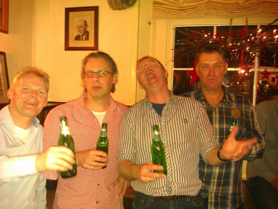 De oudejaar borrel van de wagenbouwers werd dit jaar gedaan met muziekband Sleppers in café de Keizerskroon in Ruurlo. Op deze besloten visite met 350 personen waren ook de muzikanten van Völle Wille van de partij. Het wagenbouwteam debuteerde op deze visite, nadat men met glans door de ballotage commissie was gekomen. Onder de klanken van de beide Ruurlose band werden de nodige groene flesjes Grolsch genuttigd door de Broertjes en half Broertjes en werd een goed jaar afgesloten.![]() |