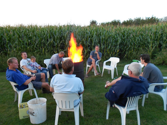 Met nog twee weken te gaan voor de optocht is het vele denken begonnen bij de Broertjes. “Vooral doen waar we goed is zijn”, dat is een kreet die de wagenbouwers veel gebruiken. Handwerk is niet het sterkste punt van hem, maar het denkwerk onder het genot van een biertje past hen beter. Zo ook vandaag, alle Broertjes waren aanwezig bij de wagen, maar echt veel zijn ze niet opgeschoten. Bij de nazit werd de “vuurkorf” even aangestoken, net als de barbecue. Wat het precies gaat worden houdt men angstvallig geheim, maar uit betrouwbare bron werd vernomen dat aanstaande maandagavond de campagne echt gaat beginnen.![]() |