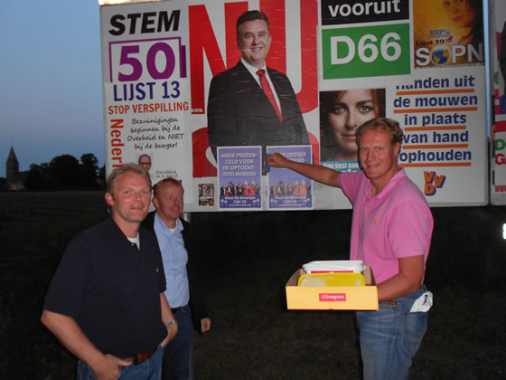 Op maandag werd het officiële startschot gegeven voor de verkiezingscampagne van De Broertjes. Onder lijst 26 willen de wagenbouwers wat veranderen aan de huidige maatschappij. Op alle uitvalswegen van Ruurlo werden op de bekende verkiezingsborden de posters opgeplakt. De Broertjes gokken op zeker één voorkeurszetel, om zo hun standpunten te realiseren.![]() |