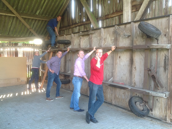 Het jaarlijkse etentjes van de Broertjes was dit maal met de half-Broertjes bij eetcafé de Naober in Ruurlo. Aangezien er ruim 20 personen gevoed moesten worden, werd er eerst flink verbouwd in het restaurantgedeelte. De wagenbouwers wilden met hun aanhang aan een lange tafel eten waardoor er een andere tafelschikking moest komen. Natuurlijk staken de wagenbouwers zelf ook de handen uit de mouwen.![]() |